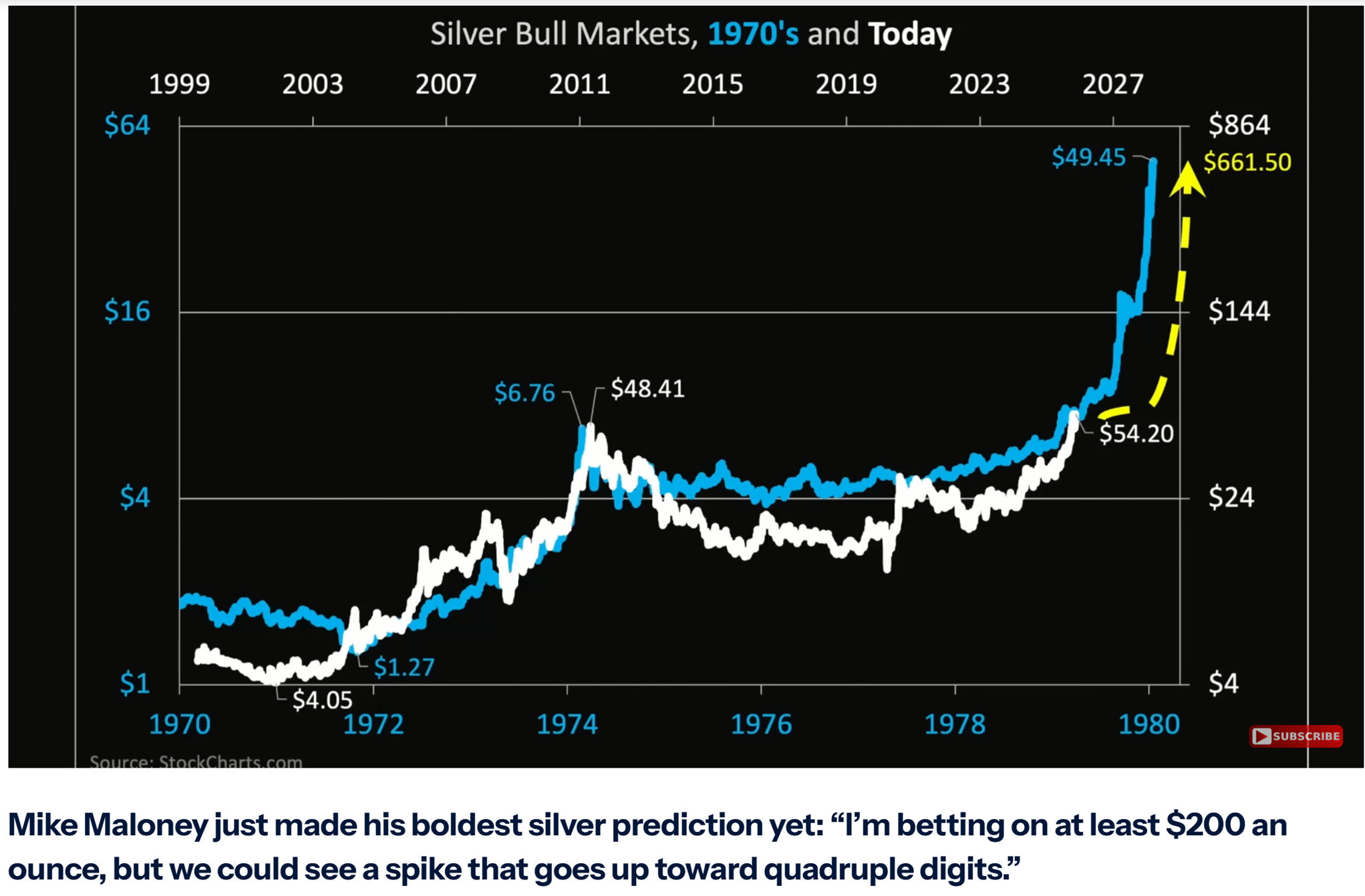 Lastly here is an exceptionally encouraging chart that I came across in the latest video on silver by Mike Maloney and Alan Hibbard